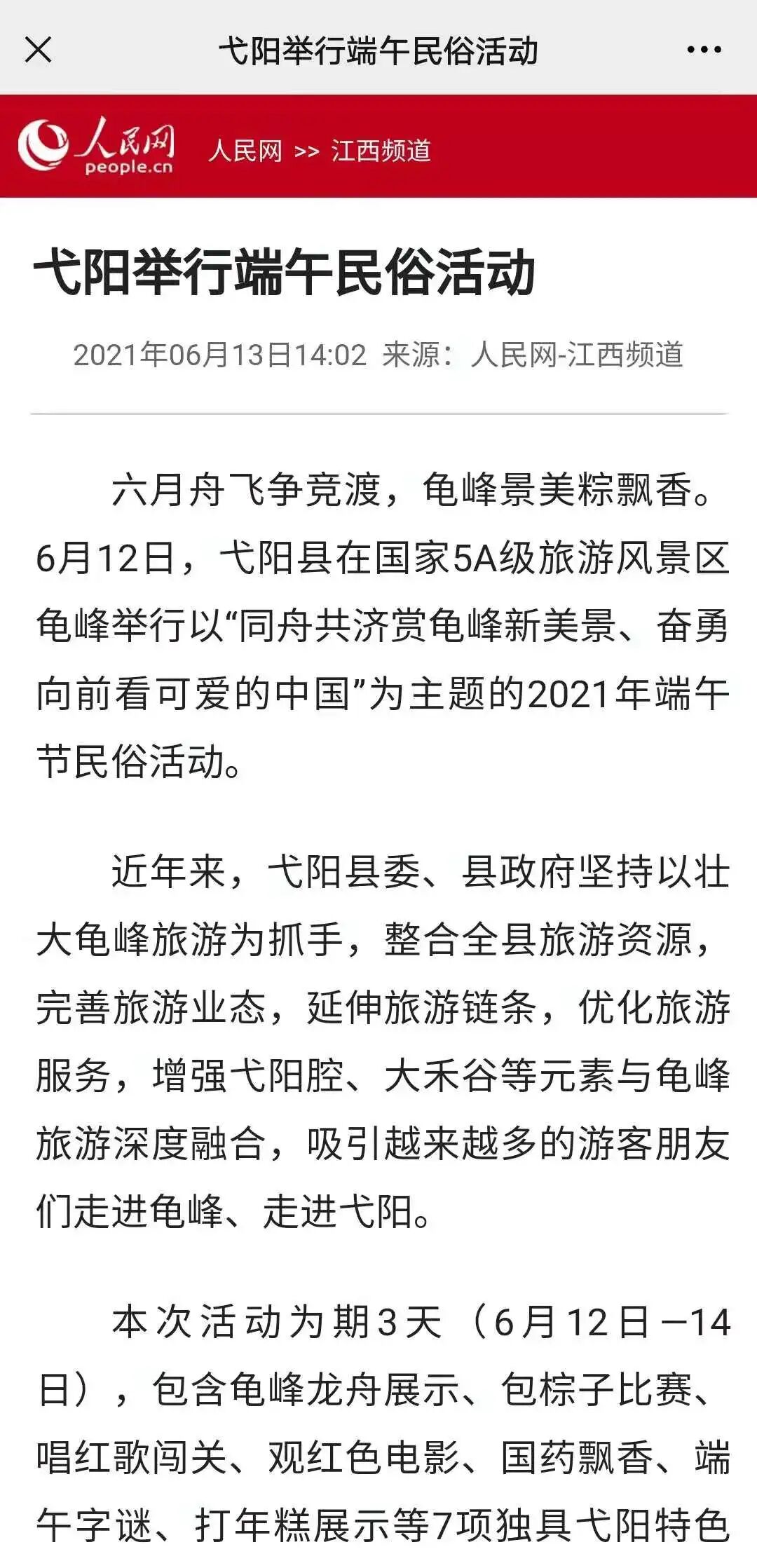 重磅!弋阳人过个端午节,央视直播,全球关注!